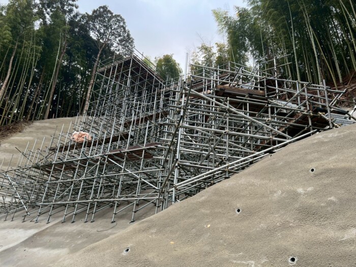 福岡県の法面足場工事をご紹介いたします。