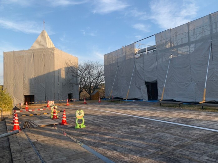 改修足場を設置しました。